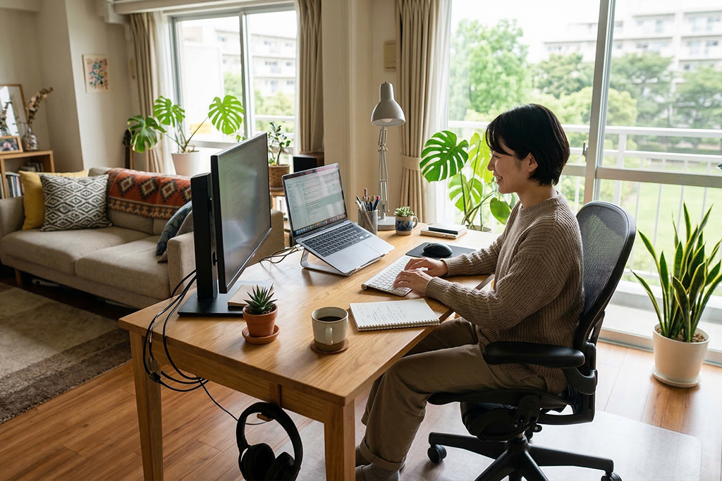 テレワークが一般化する中、自宅で仕事をする人が増えています。しかし、専用の書斎を用意できる家庭は多くなく、リビングやダイニングなど家族と共有する空間で仕事をしているケースも少なくありません。こうした環境では、生活空間と仕 […]